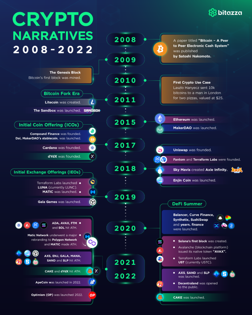 Les narratifs crypto de 2008 à 2022. Source : content.bitazza.com
